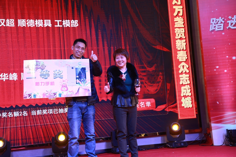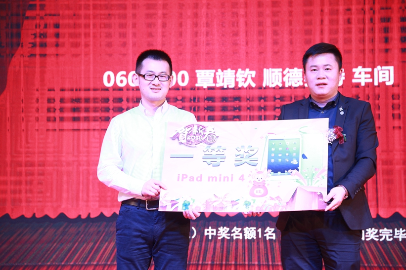 与此同时,节目流程中穿插了员工最受关注的幸运大抽奖。本年度抽奖奖品非常丰富,包括5000元现金奖、IPad mini 4、格力手机、华为手机、TCL智能除湿机、TCL电暖器、台地扇、多用途电热锅以及商场购物劵等,共计1109份奖品,中奖率达60%。除此之外,集团常务副总裁何伟先生、集团组织及营运副总裁成再育先生各赞助现金大奖3000元,让在场的同事们一次次沸腾起来。最后,总裁莫绮颜女士现场赞助了现金大奖5000元,把晚会现场的气氛推上了最高潮,引领im官网人在华灯汇聚之下,欢声不断,激情呐喊。